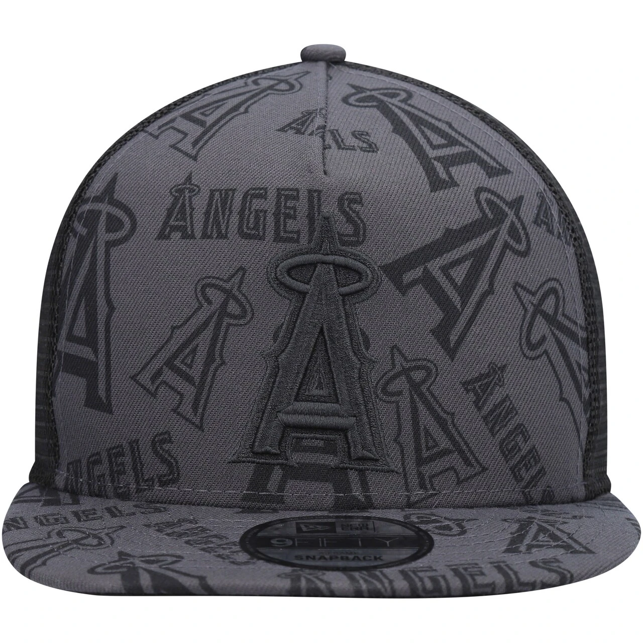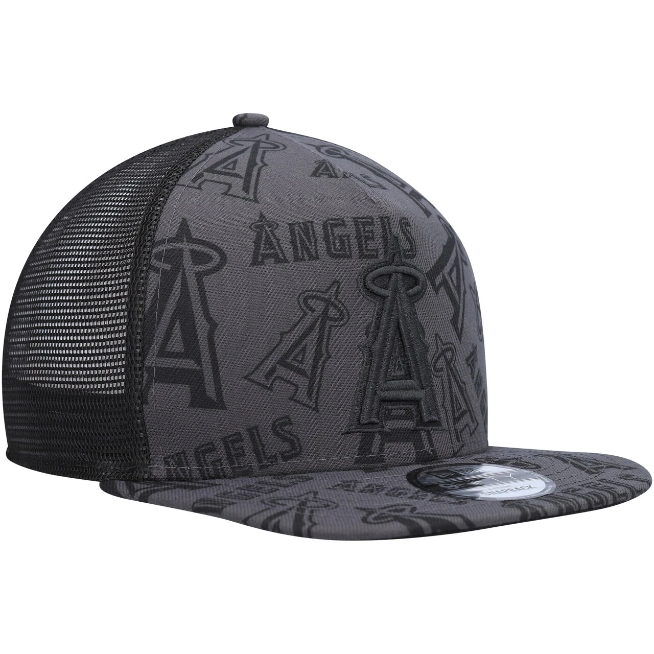 Men’s Los Angeles Angels New Era Black Repeat A-Frame 9FIFTY Trucker Snapback Hat