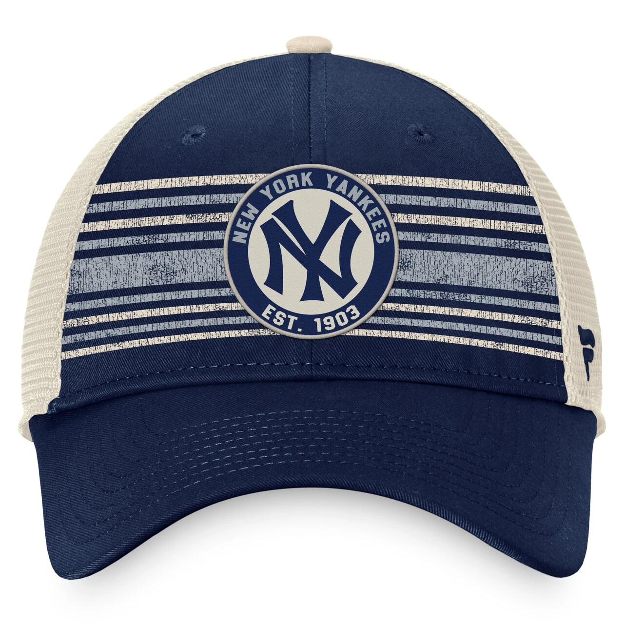 Men’s New York Yankees Fanatics Branded Navy/Natural True Classic Retro Striped Trucker Snapback Hat